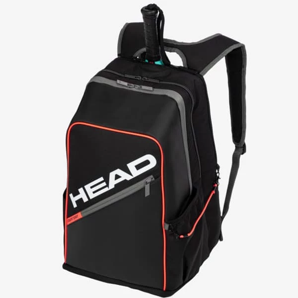 Head Tour Backpack Pickleball bag features a paddle compartment that can hold multiple paddles, auto stop zippers to keep all your items secure, a main compartment to hold extra clothing and accessories, and a ventilated pockets to keep shoes separate from the rest of the bag.