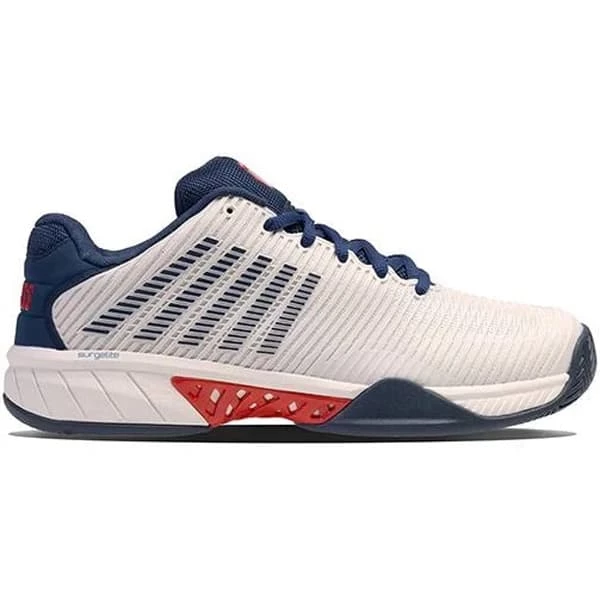 K-Swiss Hypercourt Express 2 added Surgelite midsole technology which makes this shoe even lighter and more comfortable while keeping its trademark breathability and generous fit. K-Swiss also introduces Durawrap Flex, giving the shoe more support with no break-in period. Features a new upper design instantly makes the model fresh and modern looking which will impress current and new tennis players who wear the shoe.