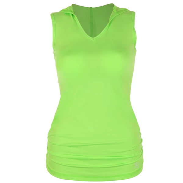 Sofibella Triumph Racerback Hoodie Tank gives your game a different look. Features a slight v neck, ruching on both sides on the bottom, and a wide racerback. Flattering fit.